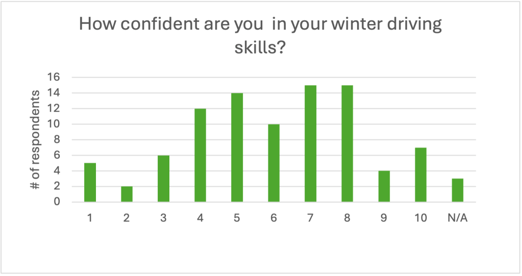 Respondents rated themselves on how confidently they can drive in the area during rough winter weather on a 1-to-10 scale.