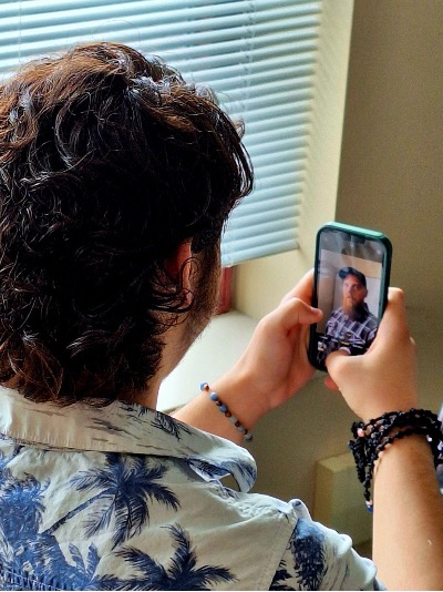 Journalism students, Finnleigh Gould and Ava Walters, taking a selfie to practice their framing.